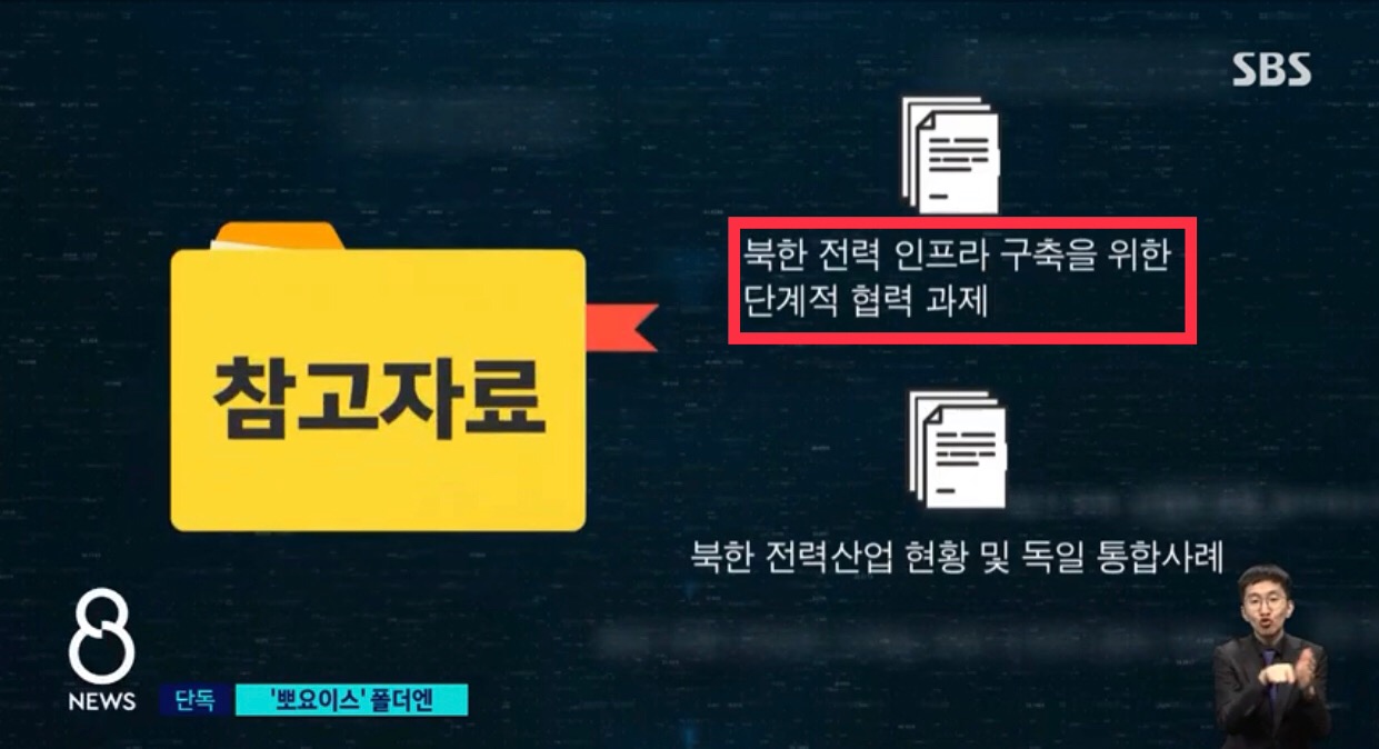 북한과 관련해선 '60 pohjois'라는 상위 폴더가 있었고, 그 안에 있던 '북한지역 원전건설 추진방안' '북한 전력 인프라 구축을 위한 단계적 협력과제' '북한 전력산업 현황과
