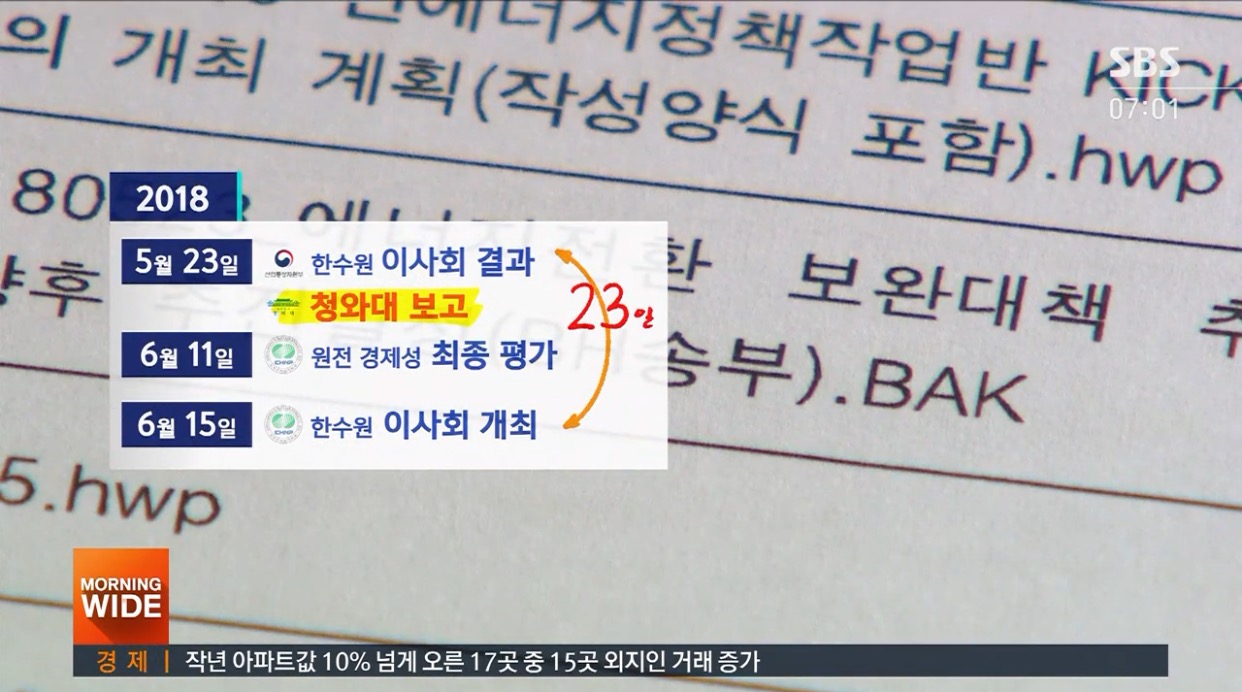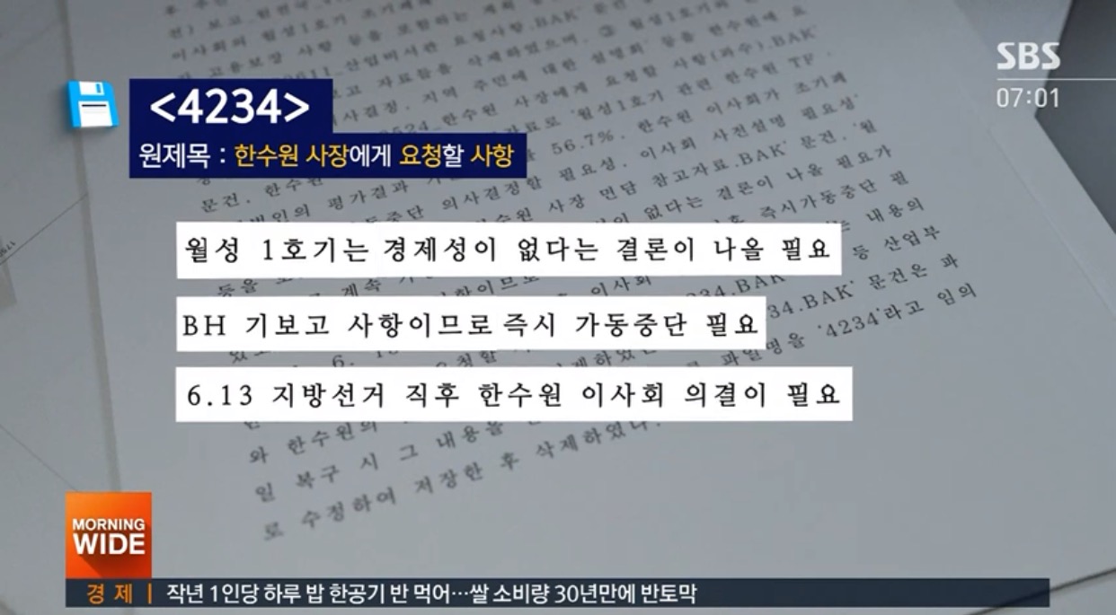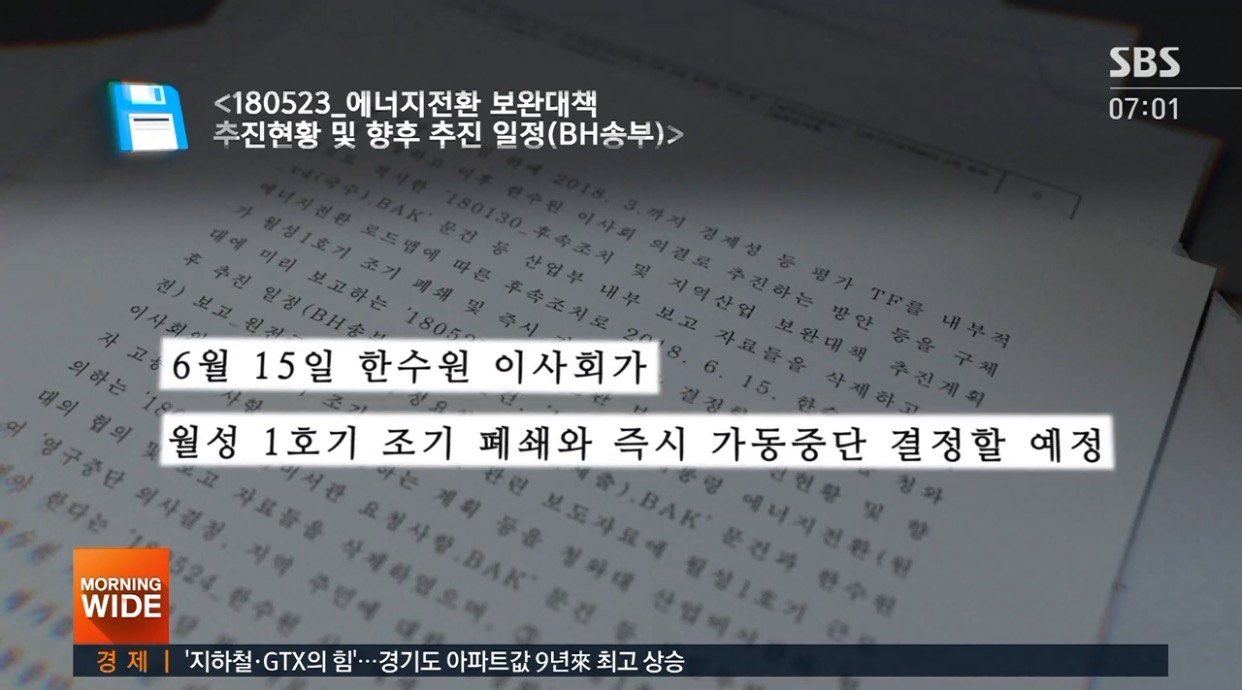 또 공소장에는 산업부가 이사회 날짜와 함께 회의 결과를 청와대에 보고한 정황도 있었다. 지난 2018년 작성된 문서에는 “6월 15일 한수원 이사회가 월성 1호기 조기 폐쇄와 즉시 가동중단을 결정할 예정”이란 문구도 있었다. 한수원 이사회가 열리기 3주 전에 작성된 것이다.