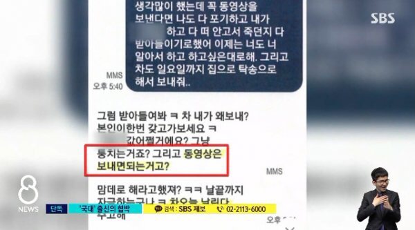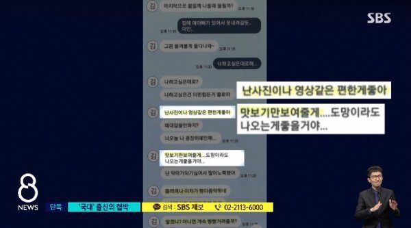 공개된 문자 메시지에서 김 씨는 사진과 영상을 들먹이며 당장 집에서 나오라고 겁박, 여성이 제발 그만해 달라고 사정하지만 돈을 요구하며 협박했다.