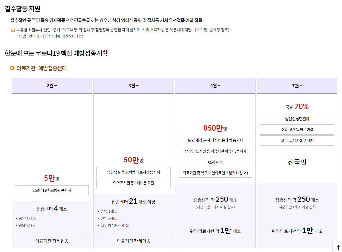 국내 코로나 예방접종 시기