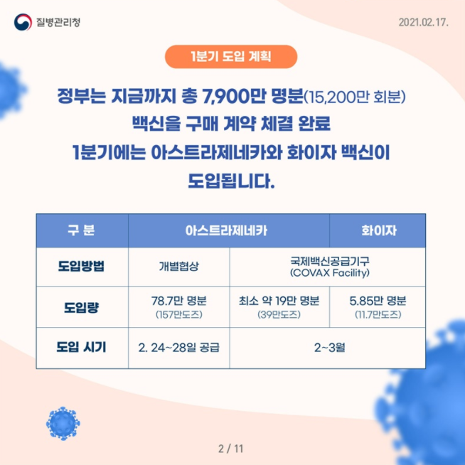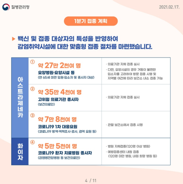 아스트라제네카는 2월 말에 식품의약품 안전처 허가와 국가출하 승인된 이후 150 만회분이 우선 공급될 예정입니다.