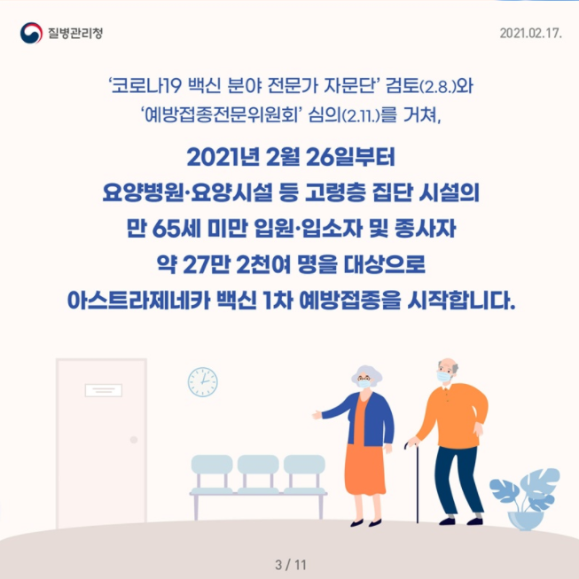 ○ 2분기에는 65세 이상 국민들과 노인재가복지시설, 장애인 거주·이용시설 등 취약시설 입소자와 종사자에게 예방접종을 시행한다.