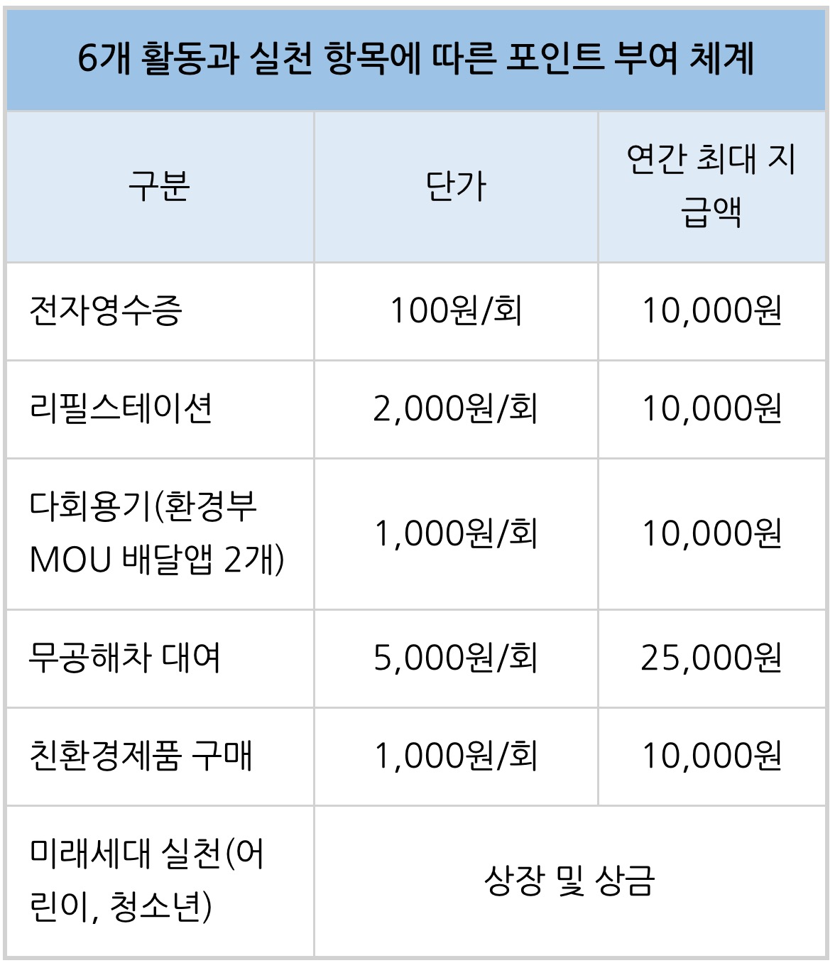 실천 항목에 따른 포인트 부여 체계는 사진 표를 참고해주세요