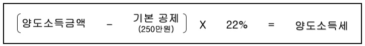 기본공제 250만원을 제하여, 지방세 포함 22%의