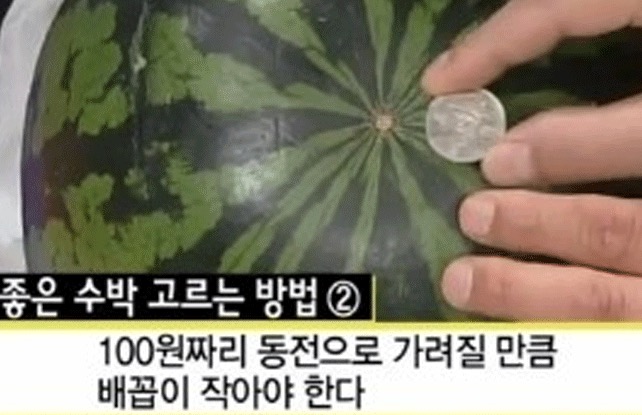 이 부분이 작아야 좋은 수박이라고 합니다.