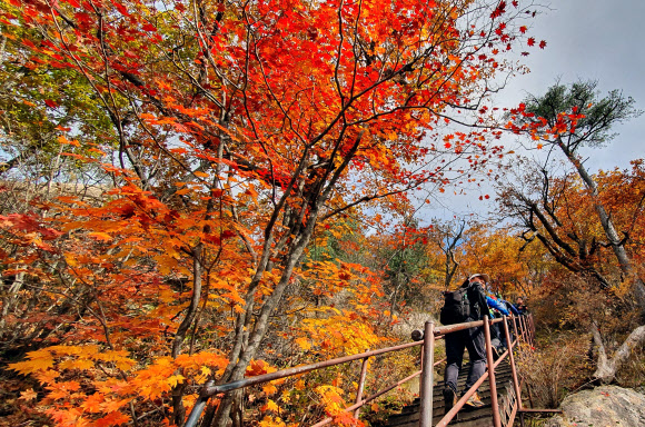 늦여름부터 가을까지 인기가 높은 ▲지리산 칠선계곡(주 4회 40명) ▲속리산 묘봉(310명)·도명산(480명)은 지난 1일부터 10월31일까지 사전 예약제를 실시하고 있다. 월악산 옥순봉·구담봉(560명) 및 황장산(370명)은 11월30일까지 운영합니다.