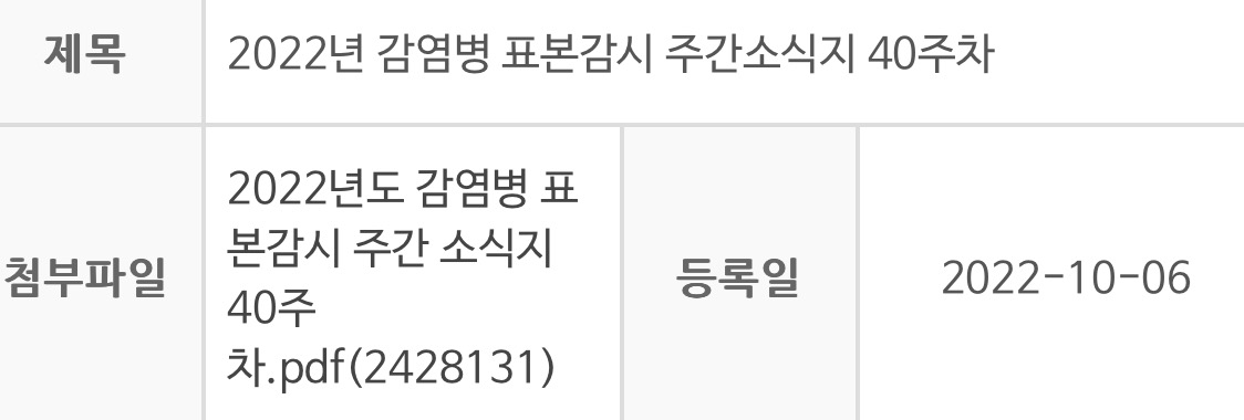 질병관리청의 '감염병 표본감시 주간소식지'에 따르면 2022년 기준 40주차(9월25일~10월1일) 독감 의사환자 분율은 외래환자 1000명당 7.1명으로 전주(4.9명) 대비 2.2명 증가했으며 1~6세 영아의 경우 12.1명으로 다른 연령대보다 높고 전주(7.9명) 대비 4.2명이나 늘었습니다.