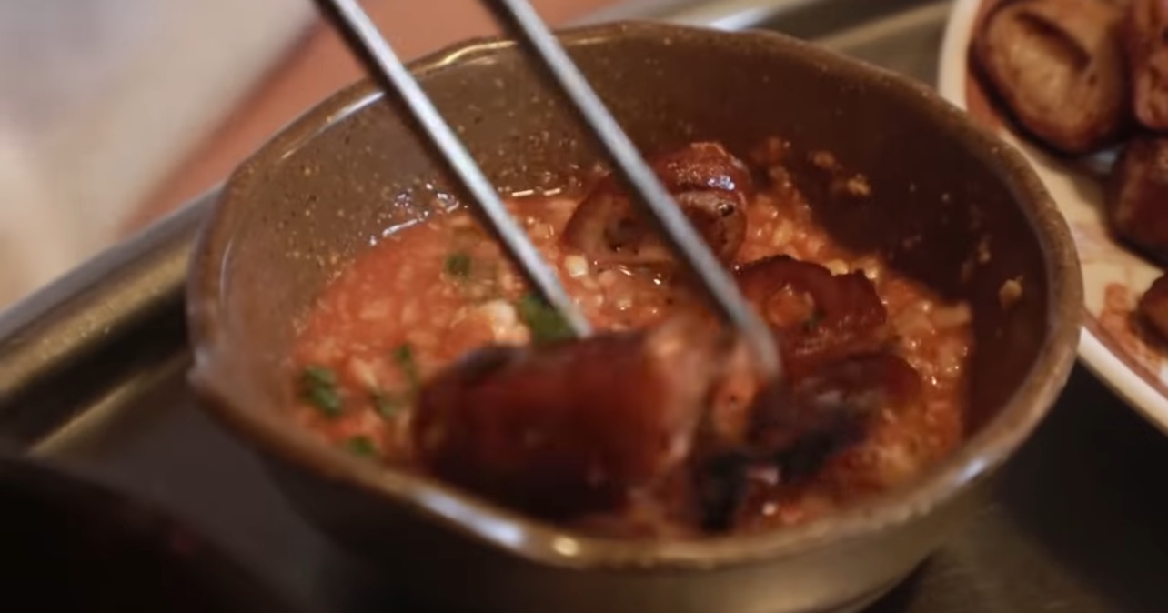 맛은 상당히 기름지고 질기며 양 자체는 얼마 안 될지라도 상당히 기름 지기 때문에 포만감이 금방 드는 음식입니다.